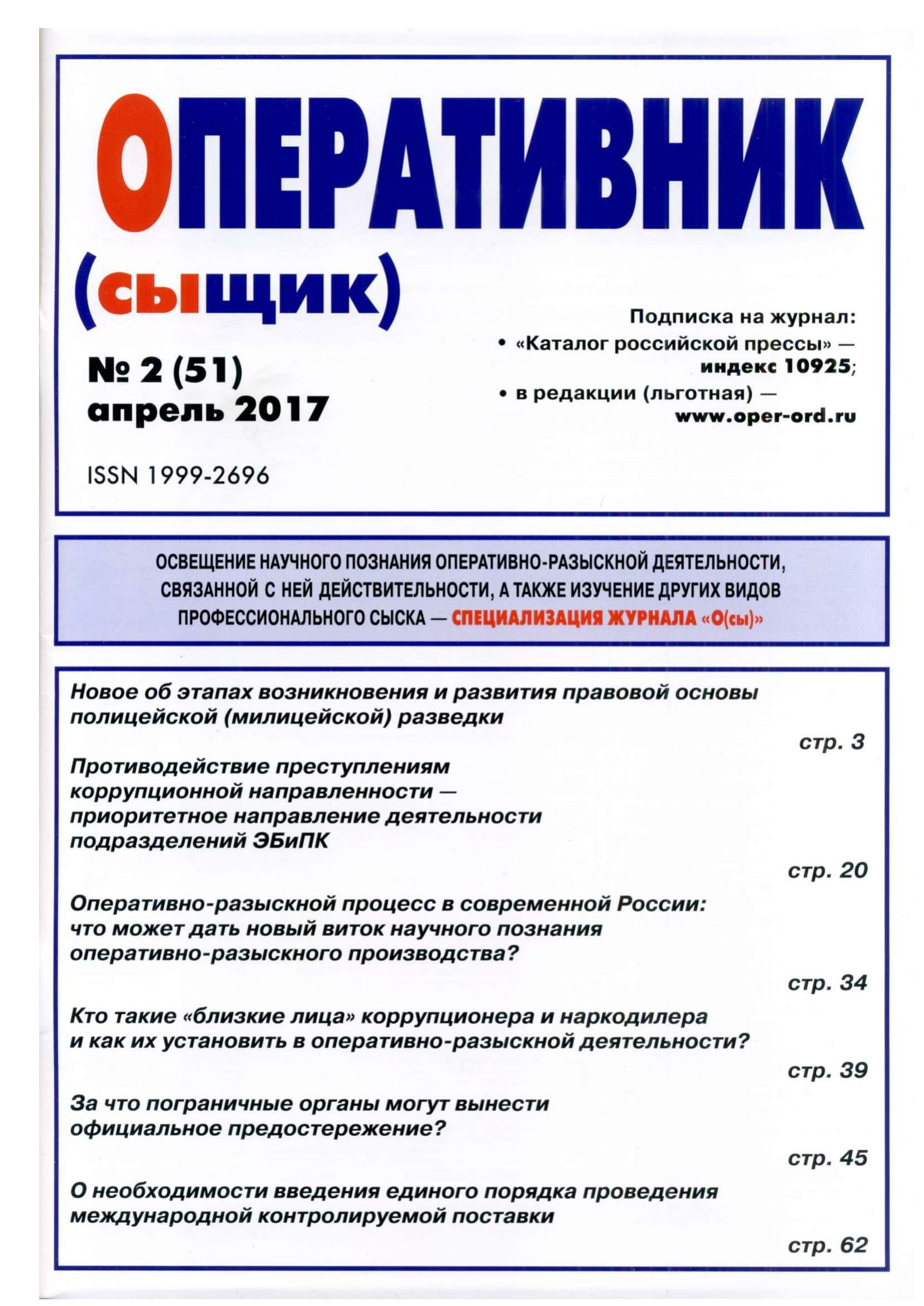 Оперативник (сыщик). 2017. № 2 (51)